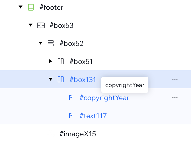 $w('#copyrightYear').text = `© ${year} Company Name. All Rights Reserved.`;