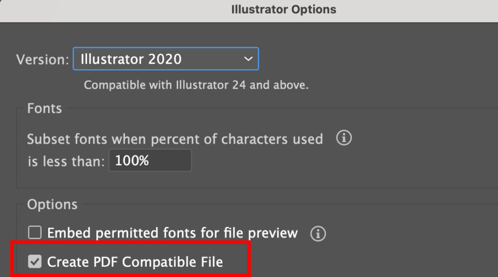 To avoid this issue entirely, make it a habit to leave Create PDF Compatible File enabled when saving your own Illustrator files.