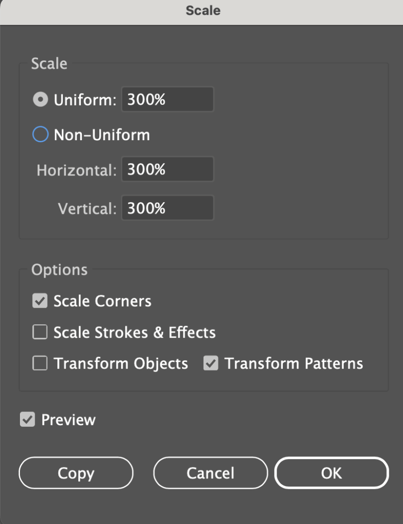 - Uncheck Transform Objects and leave Transform Patterns checked.
